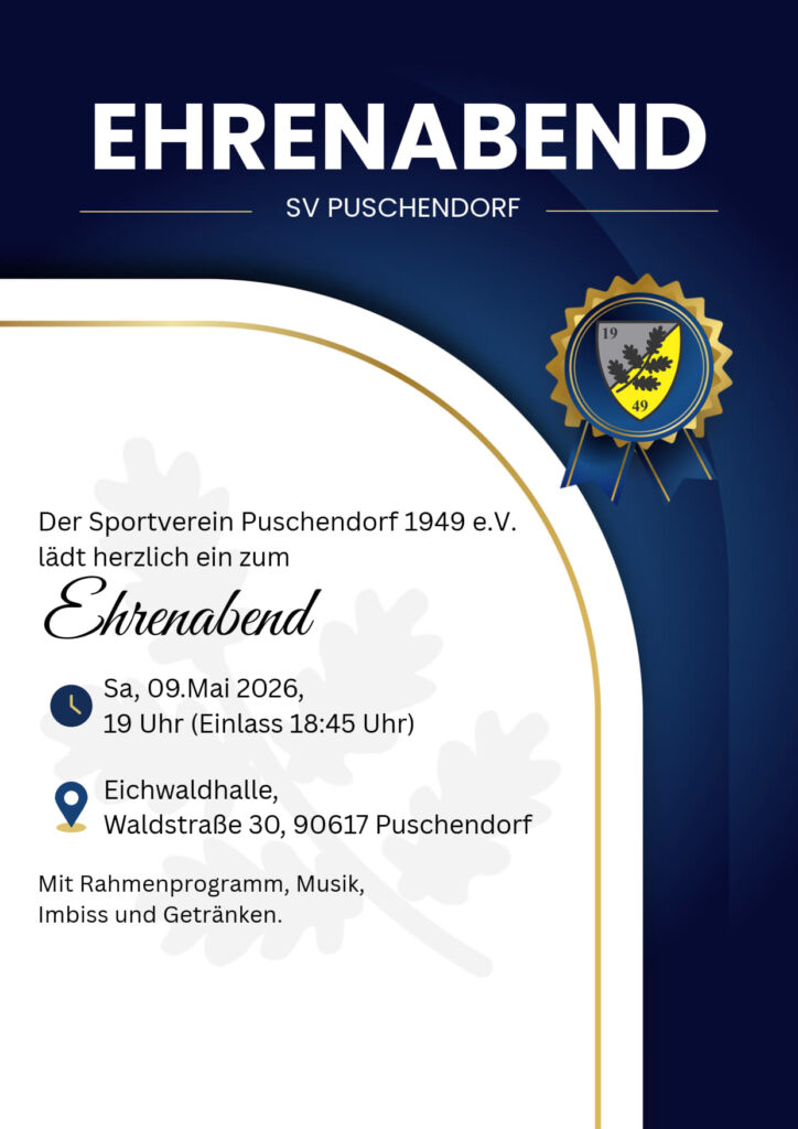 Samstag 09.05.2026 19:00 Uhr Ehrenabend Sportverein Puschendorf